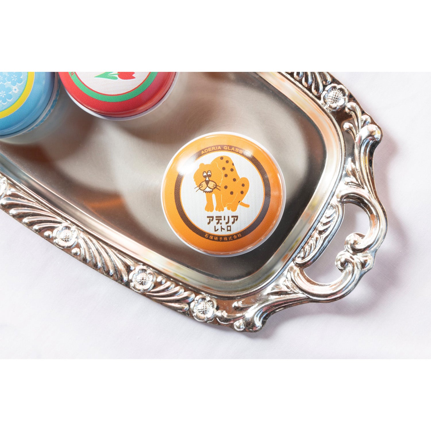 バーム缶は「アデリアレトロ」のデザインが外側にも内側にもあしらわれています。