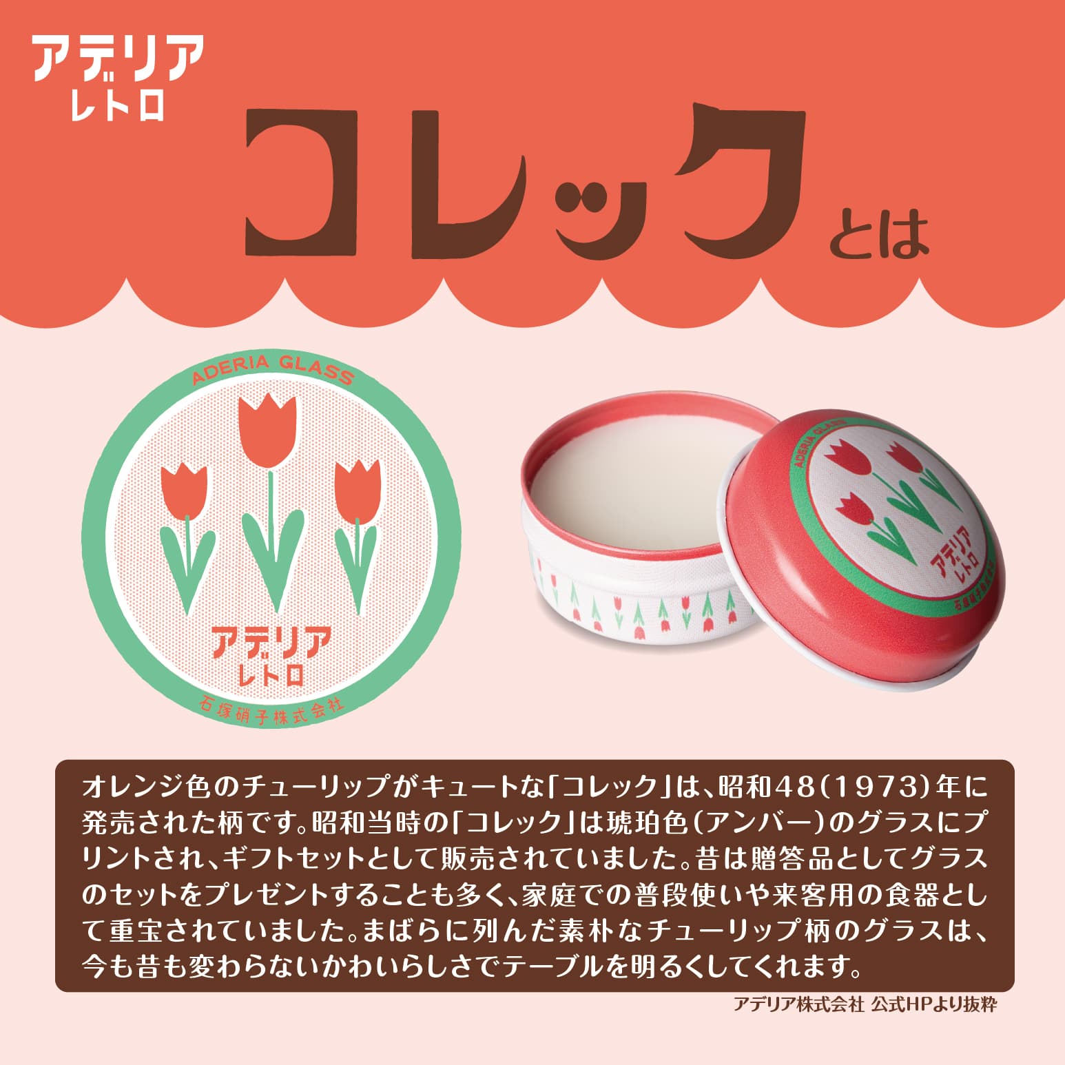 「アデリアレトロ」は、昭和の家庭で使われていた「アデリア」のプリントグラスを、現代のライフスタイルにあわせてリメイクした製品です。文政2年(1819年)からガラス製造を行う老舗のガラス製品メーカー「石塚硝子株式会社」から、1961年に食器ブランド「アデリア」が誕生し、昭和の人々に広く親しまれました。代表的な商品の一つは、花や動物などかわいらしい柄をあしらったプリントグラスです。そして2018年、「アデリア」のヴィンテージグラスの人気に後押しされ、当時の絵柄を復刻させた「アデリアレトロ」シリーズが誕生。製品に施された可愛らしく懐かしい絵柄が、今も多くの人々の心を掴んでいます。