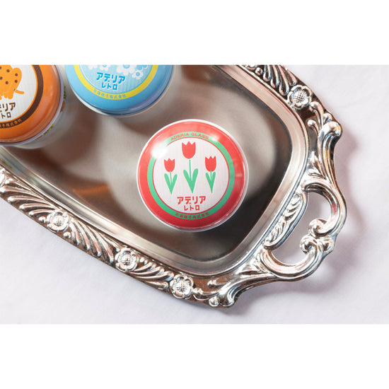 バーム缶は「アデリアレトロ」のデザインが外側にも内側にもあしらわれています。